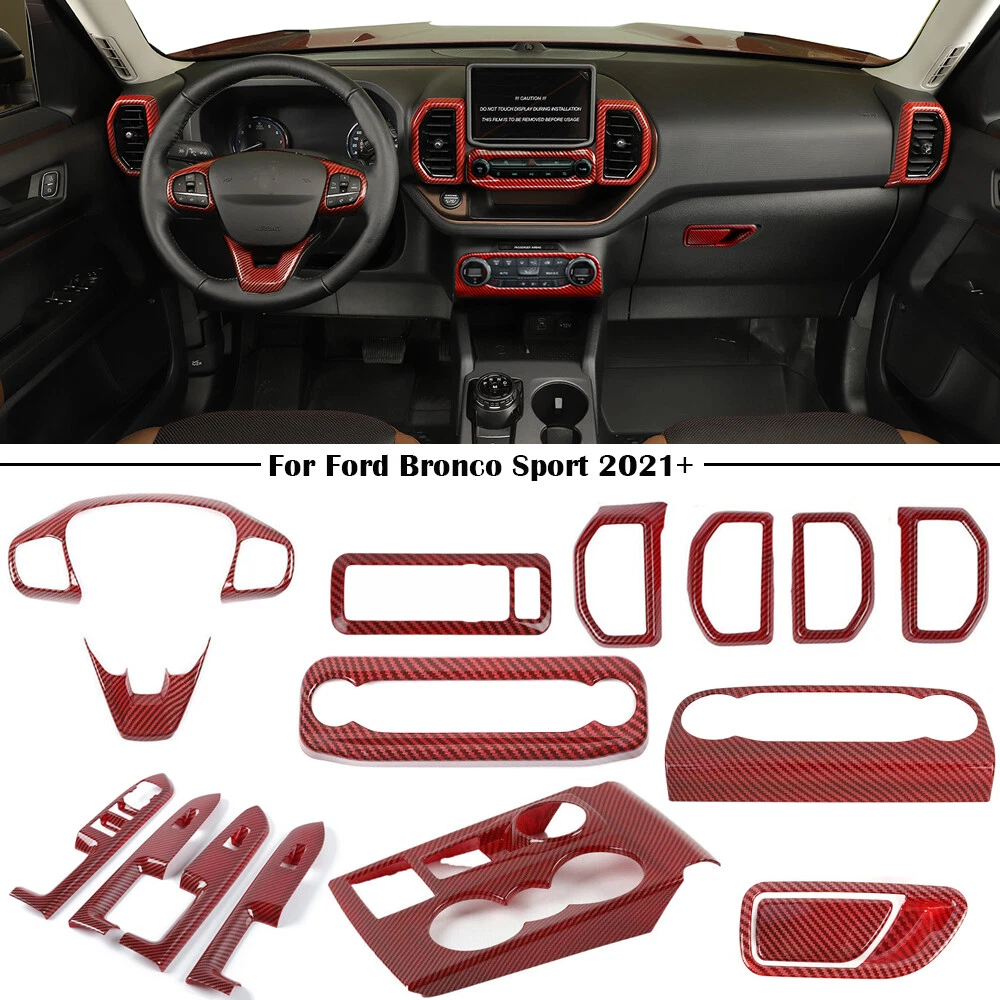 16x Full Set Interior Cover Trim Kits For Ford Bronco Sport 21 Red Carbon Fiber Ebay